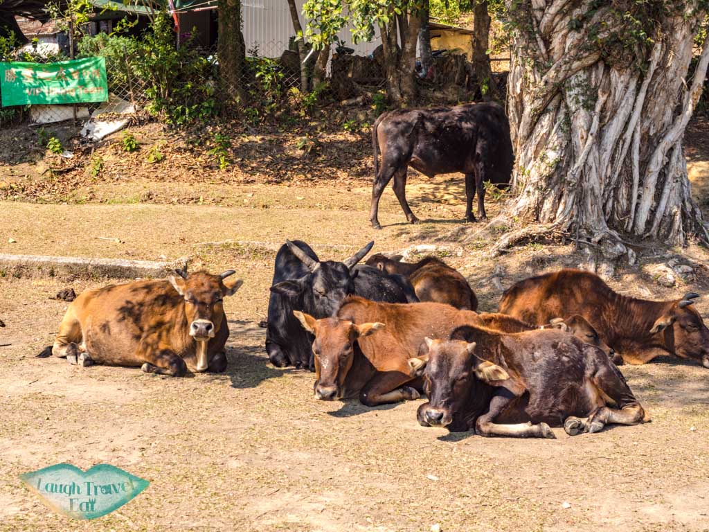 The trail emerges at a grass field at Cheung Sheung, where we found a group of cows and buffalos.