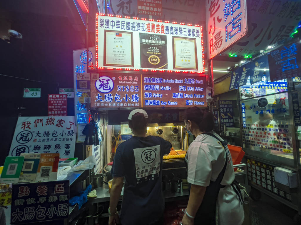 大腸包小腸就是糯米熱狗,我們見到了很多人都在排冠正宗創始店大腸包小腸,他們有許多口味可以選擇,我們選擇了大蒜口味,味道非常的好!飽足感十足!